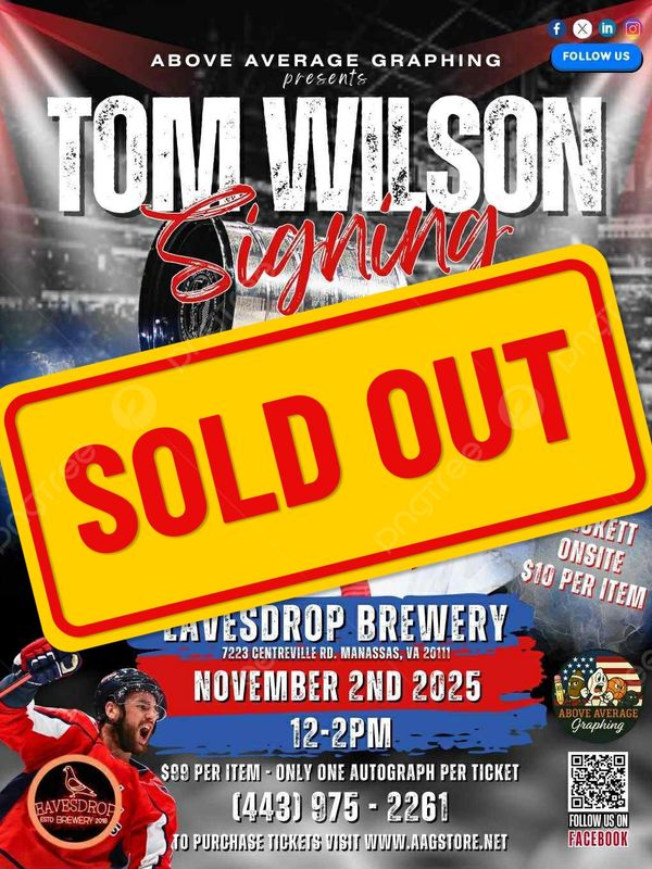 This is a very rare appearance from our future Captain. AAG is excited to bring Tom Wilson to Eavesdrop Brewery on Sunday November 2nd.